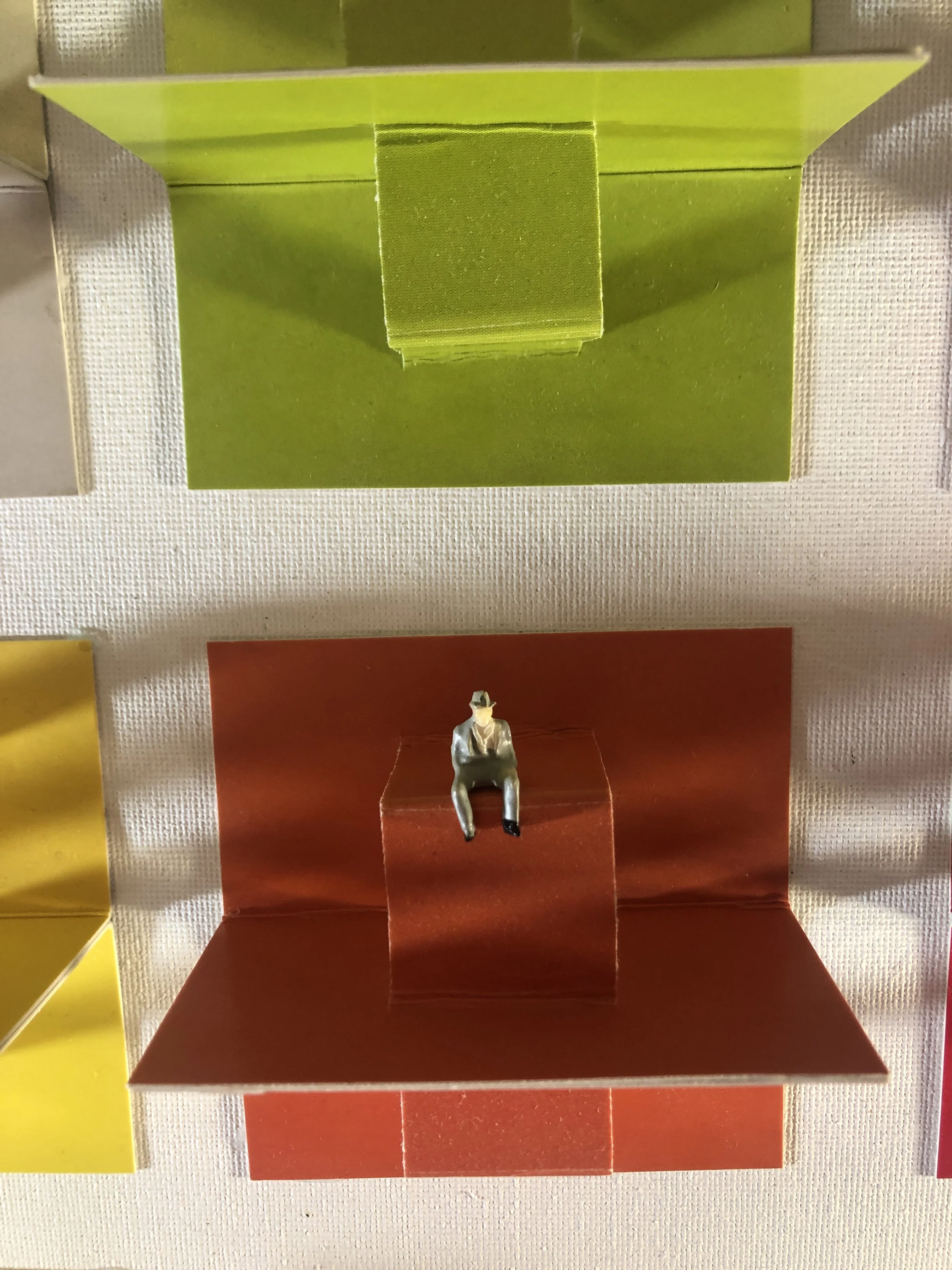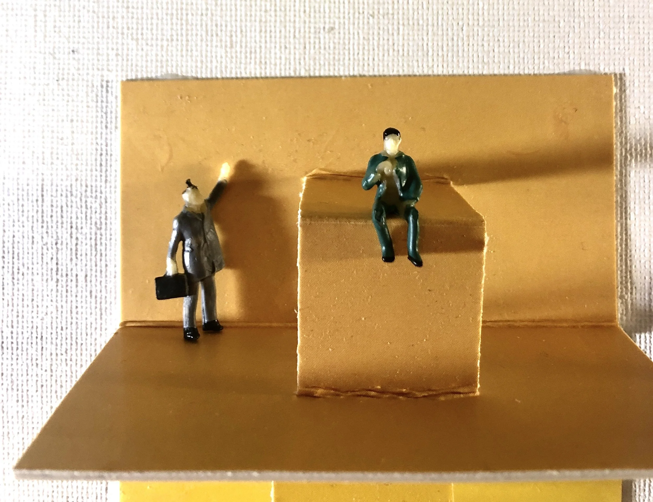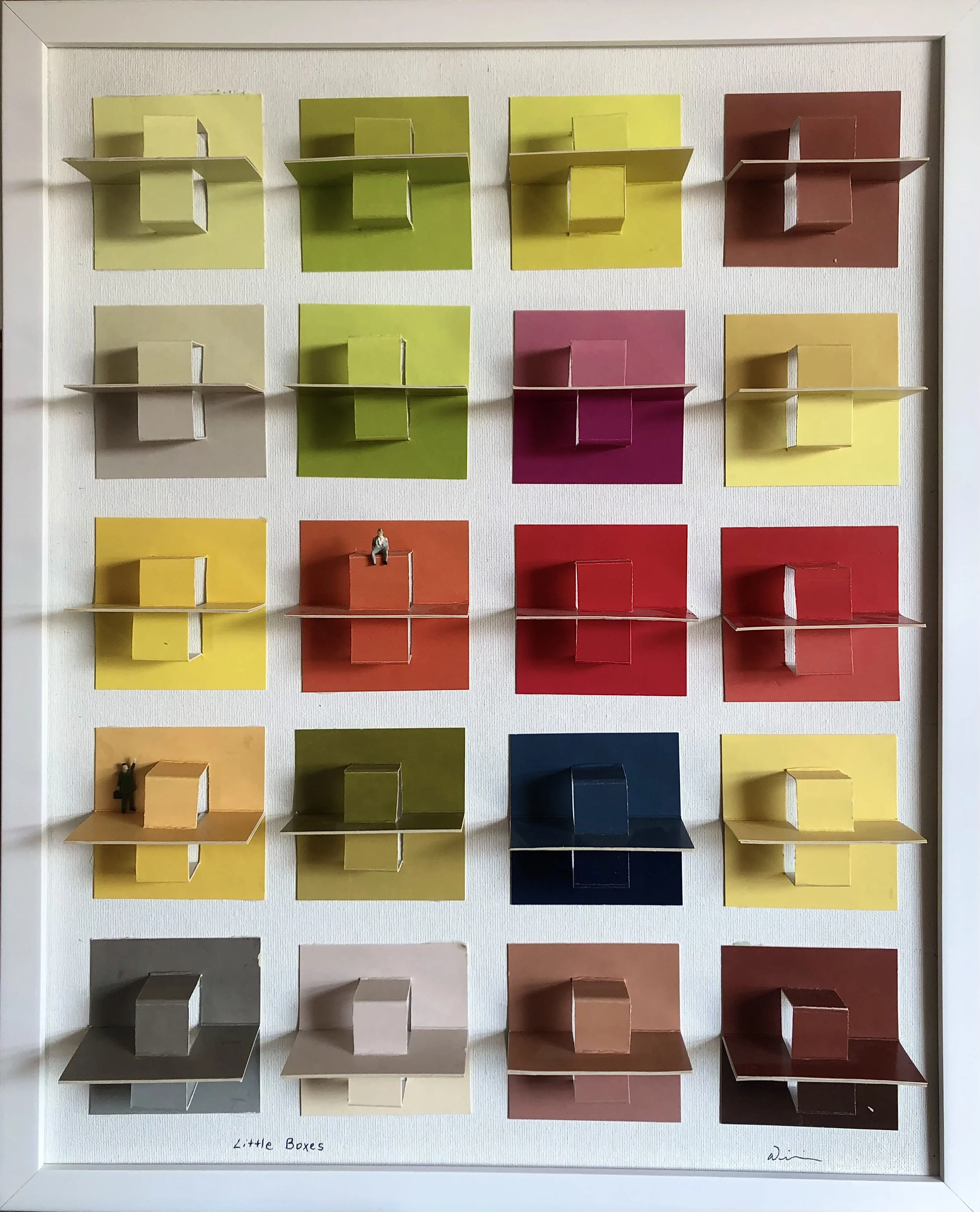 Little Boxes, Paper and Model Figures, 17” X 21”